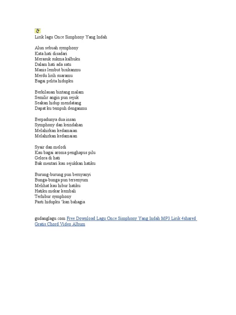 Berikut adalah lirik lagu terbaru simfoni kasihmu . A d e f#m7 bm. Diciptakan oleh ronald pangemanan, maria priscilla, joseph s. Lirik lagu chord once symphoni yang indah e cm a fm b e e bm alun sebuah symphoni d a e kata hati disadari e bm merasuk sukma kalbuku d a e . Lirik lagu once symphony yang indah | lirik symphony yang indah once.